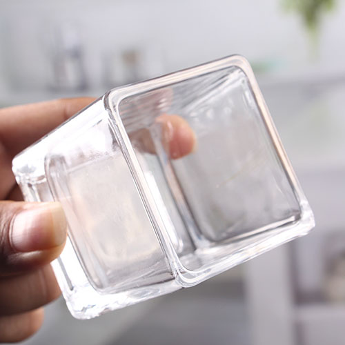 Les produits en bougies en verre carré montrent: